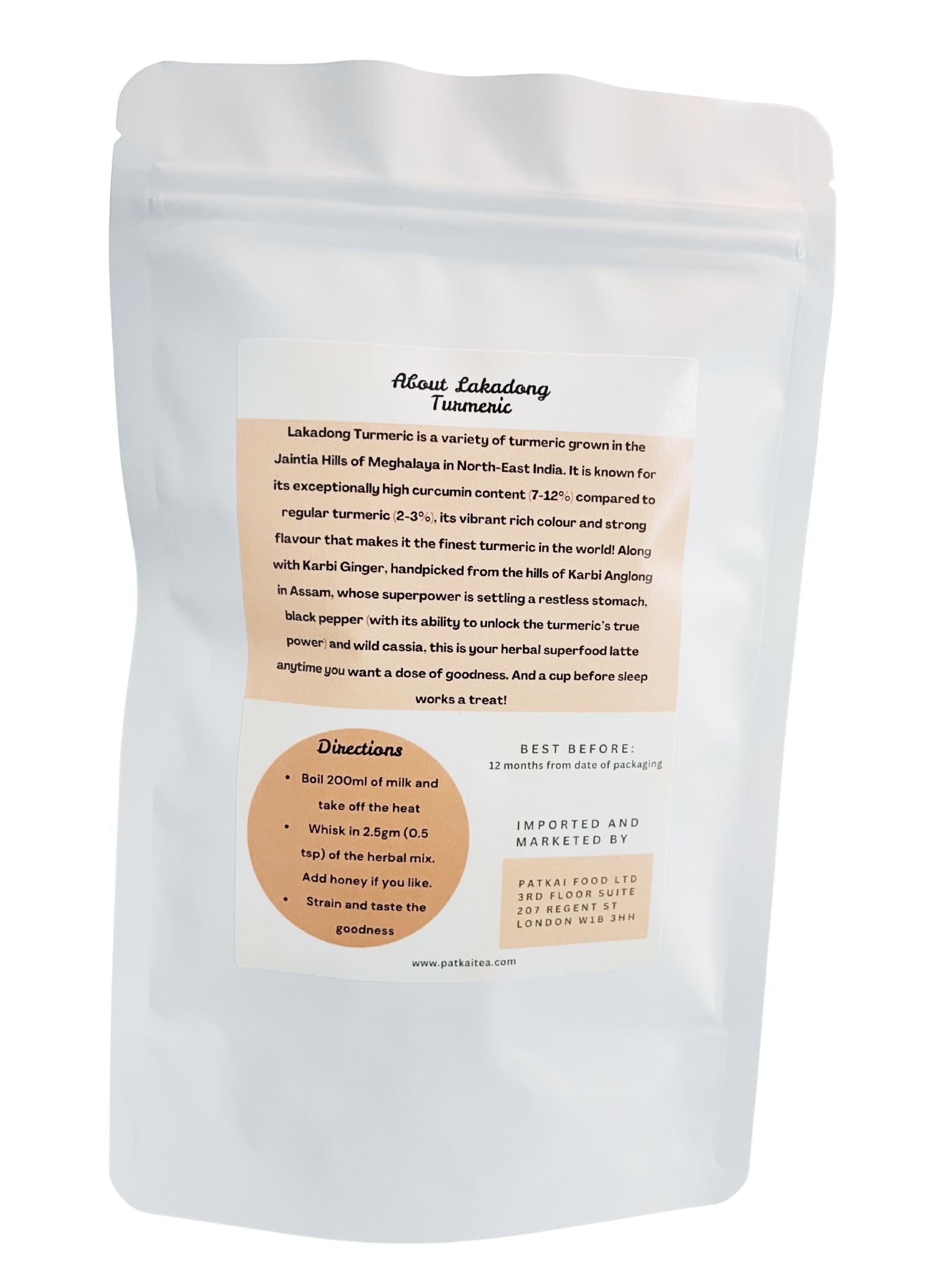 - Along with Karbi Ginger, handpicked from the hills of Karbi Anglong, our Lakadong Turmeric Latte is blended with black pepper and wild cassia.